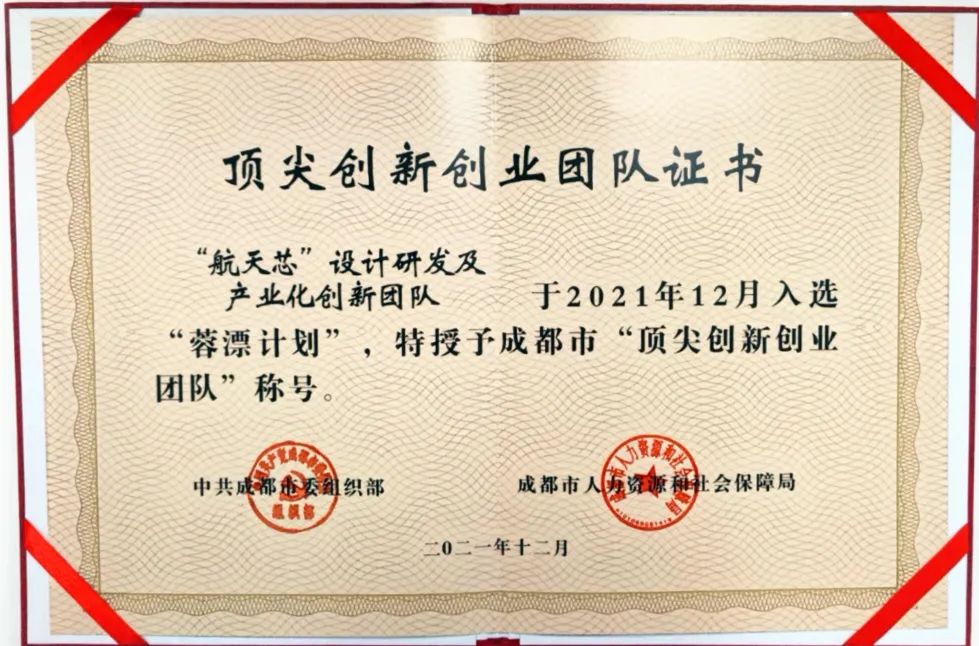 “航天芯”設計研發及產業化創新團隊榮獲成都市頂尖創新創業團隊稱號