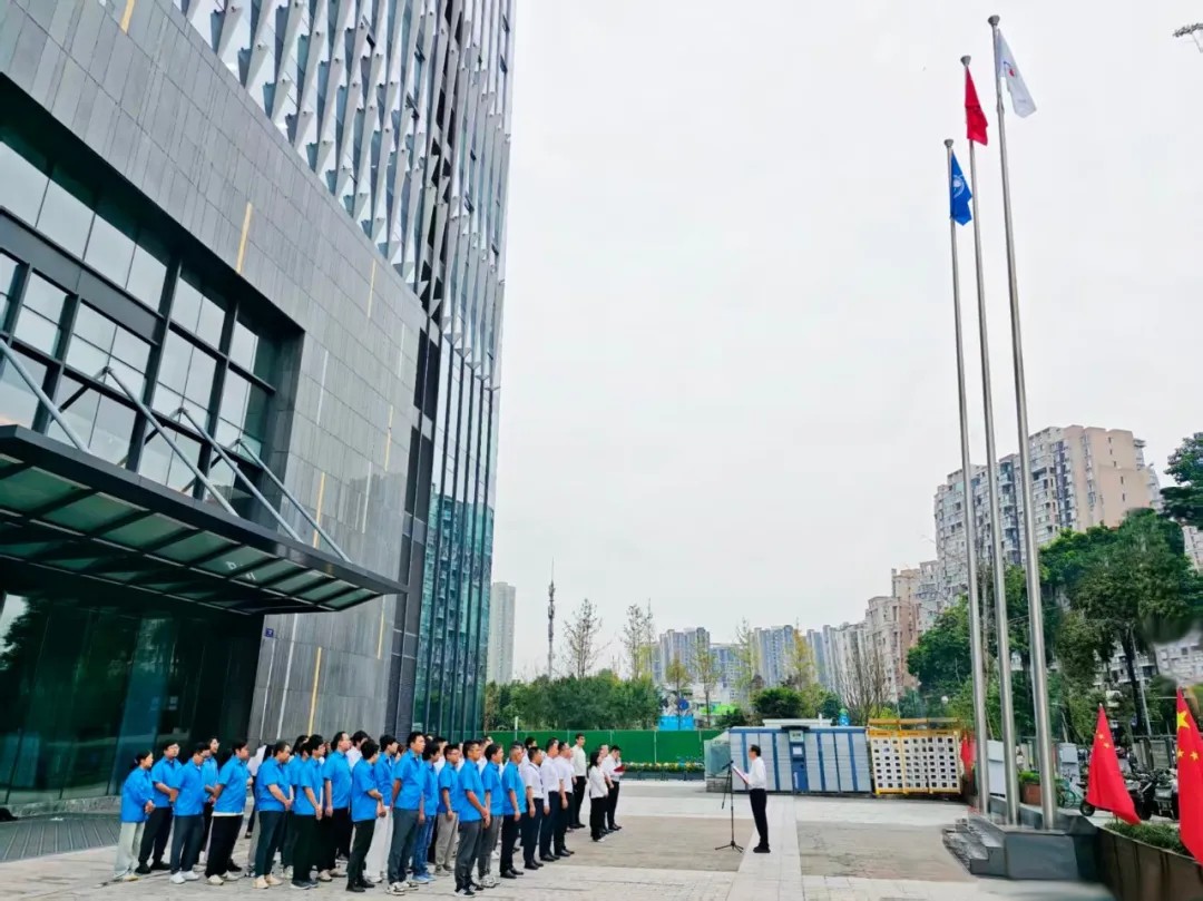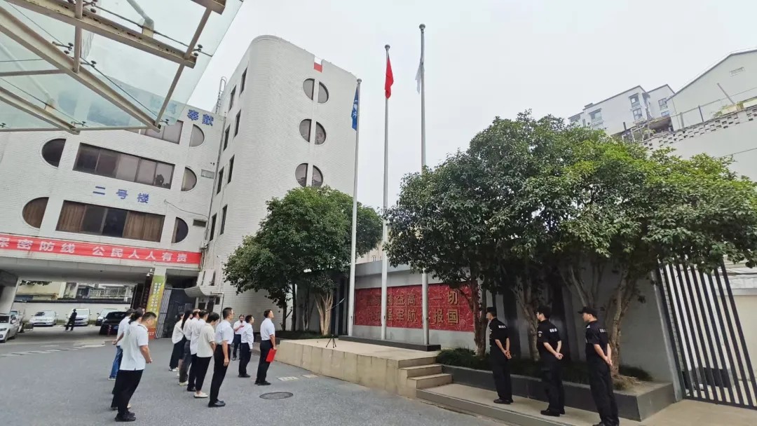 9月30日,航天通信所屬單位在杭州、成都、沈陽(yáng)、長(zhǎng)沙、綿陽(yáng)、鎮(zhèn)江等地同步舉行升旗儀式。