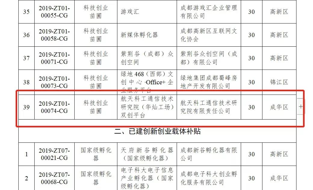 喜報!通信研究院雙創(chuàng)平臺被評為2019成都市科技創(chuàng)業(yè)苗圃