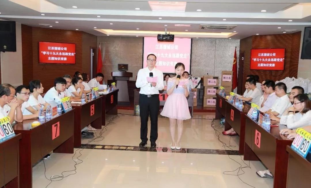720日,江蘇捷誠開展了以“學(xué)習(xí)十九大,永遠(yuǎn)跟黨走”為主題的宣傳貫徹黨的十九大精神知識競賽活動。公司領(lǐng)導(dǎo)班子成員,各黨支部黨員代表共79人參加活動。