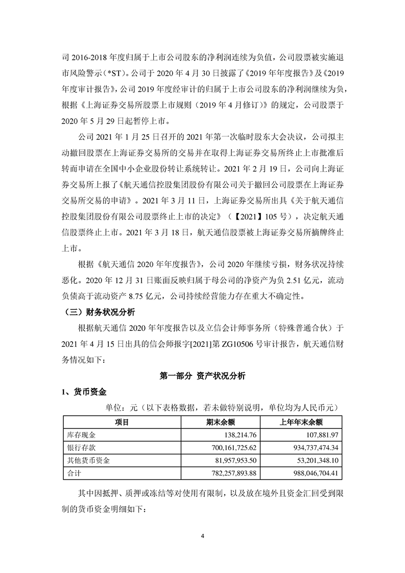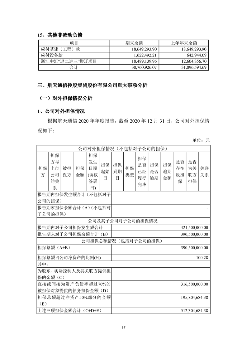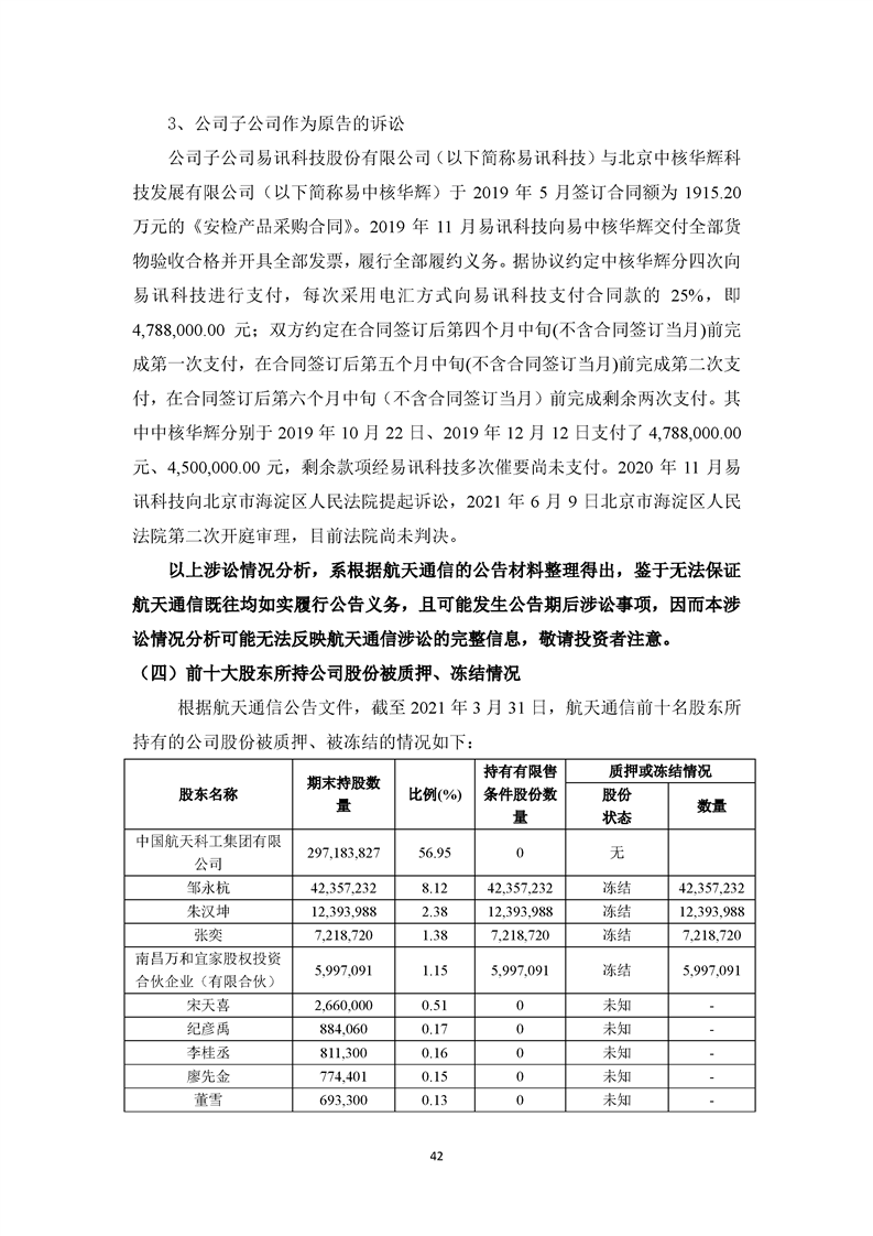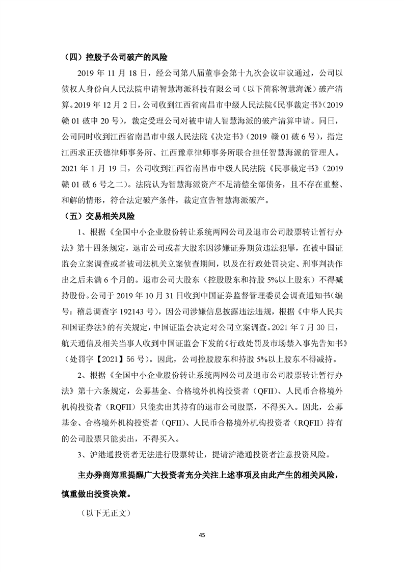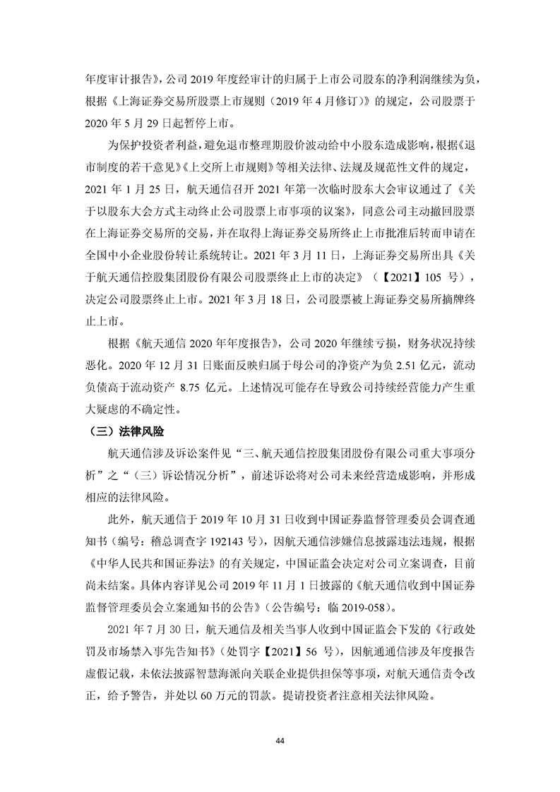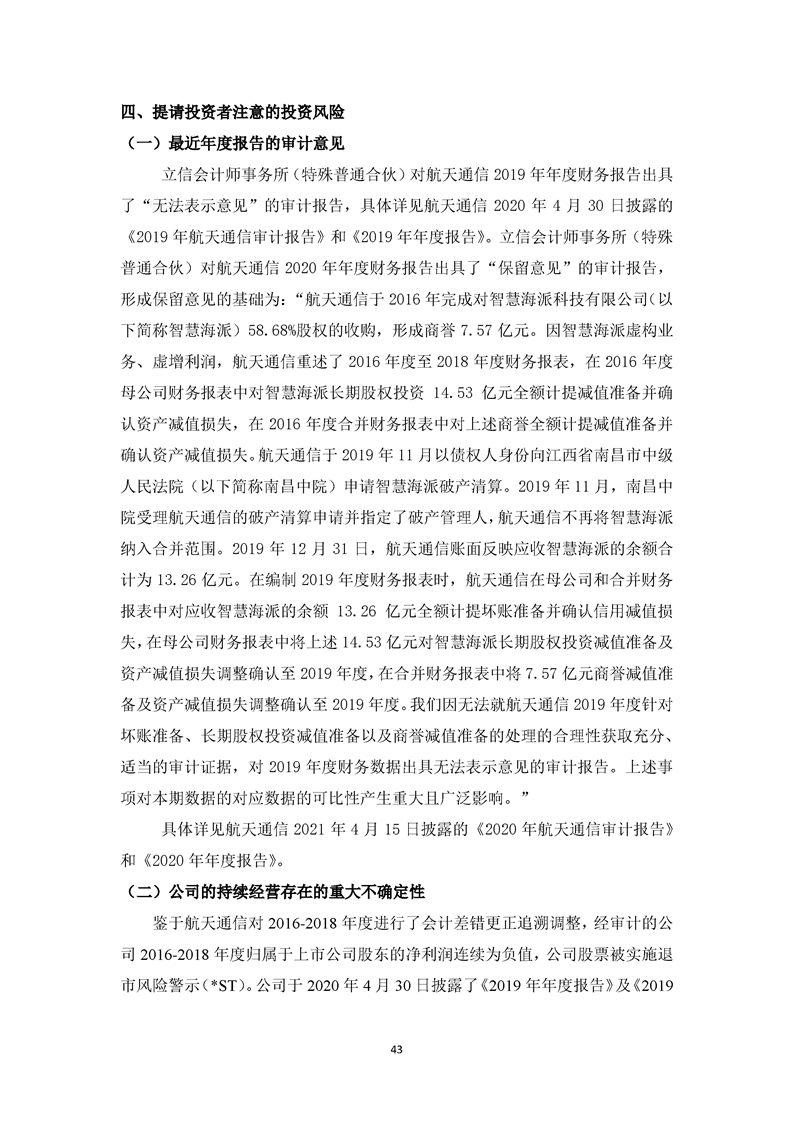 關于航天通信控股集團股份有限公司投資風險分析的報告