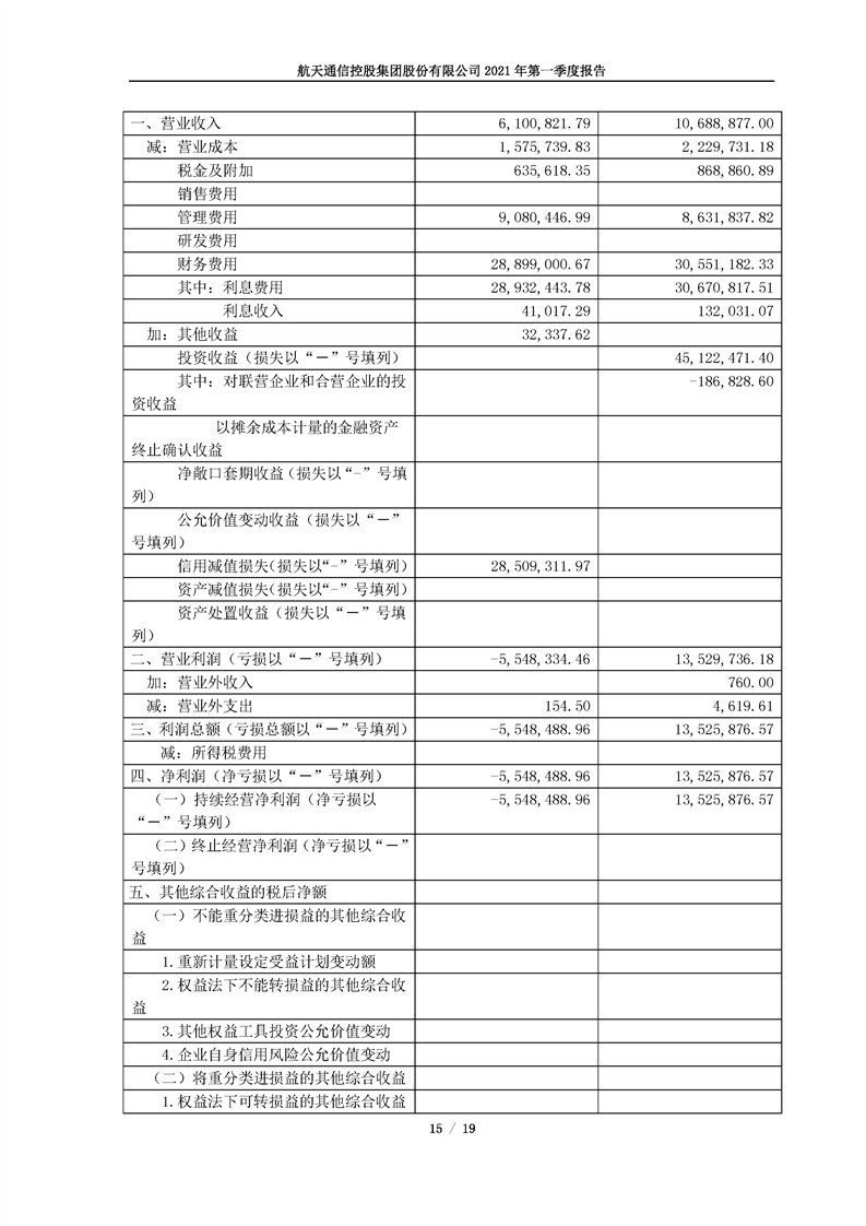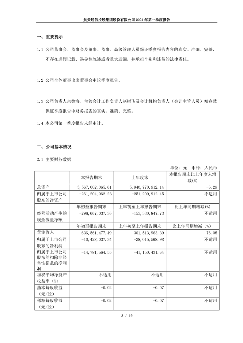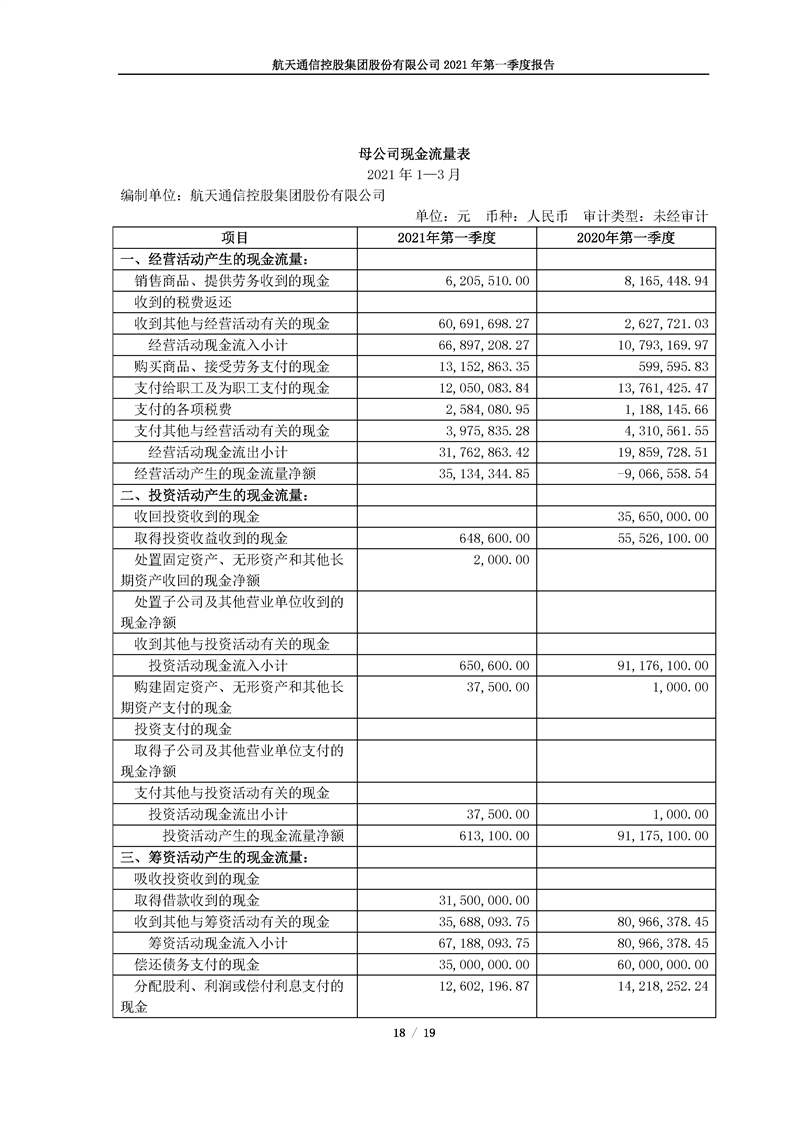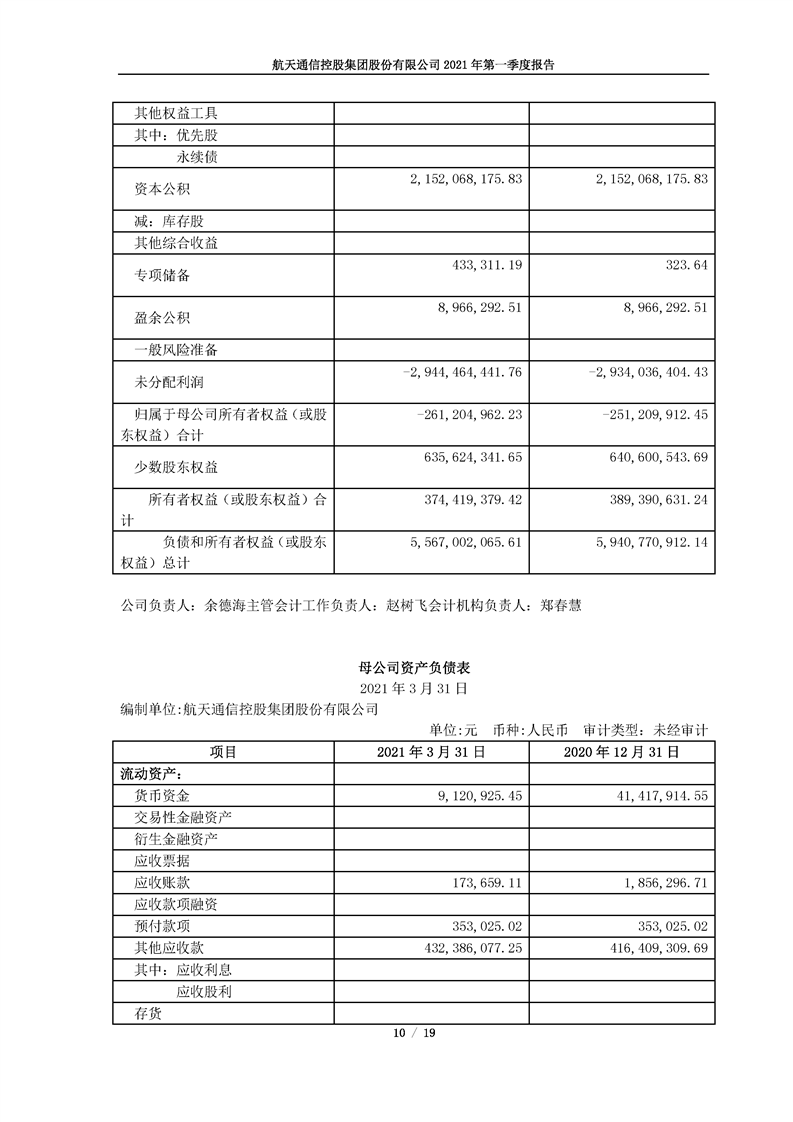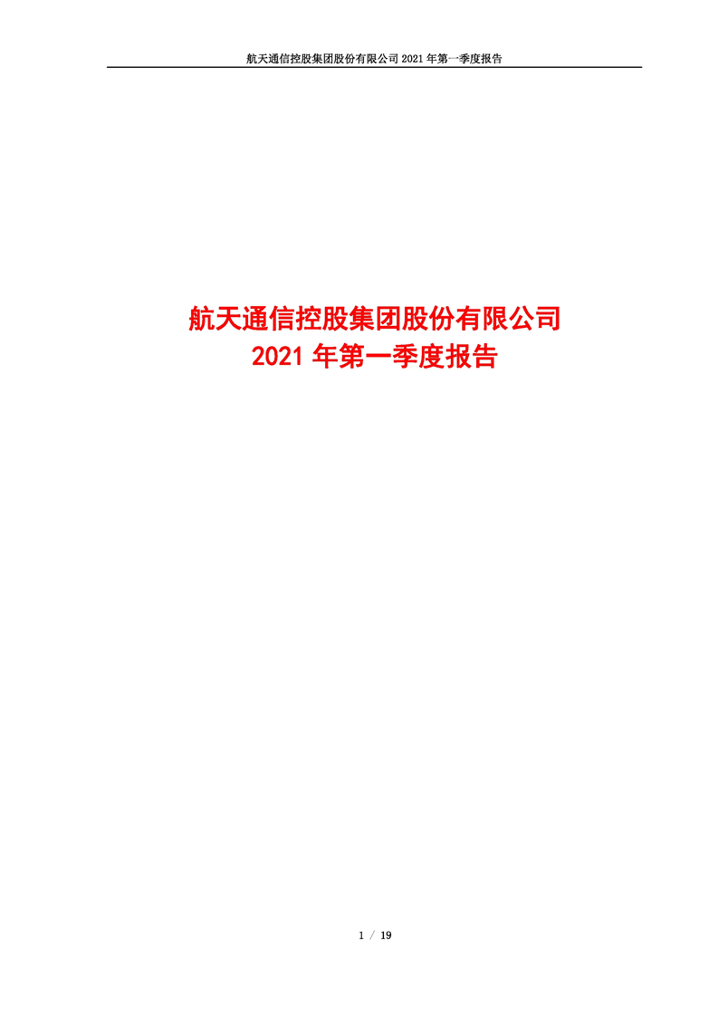 航天通信控股集團(tuán)股份有限公司2021年第一季度報(bào)告