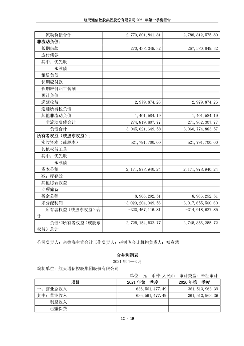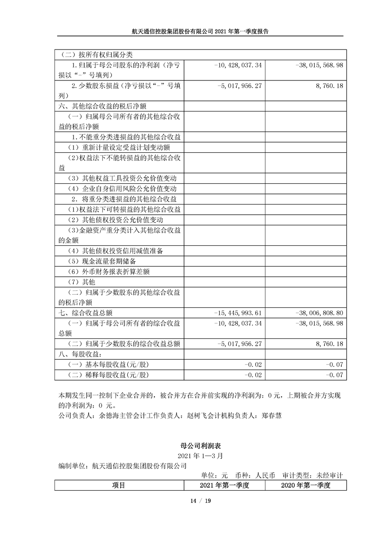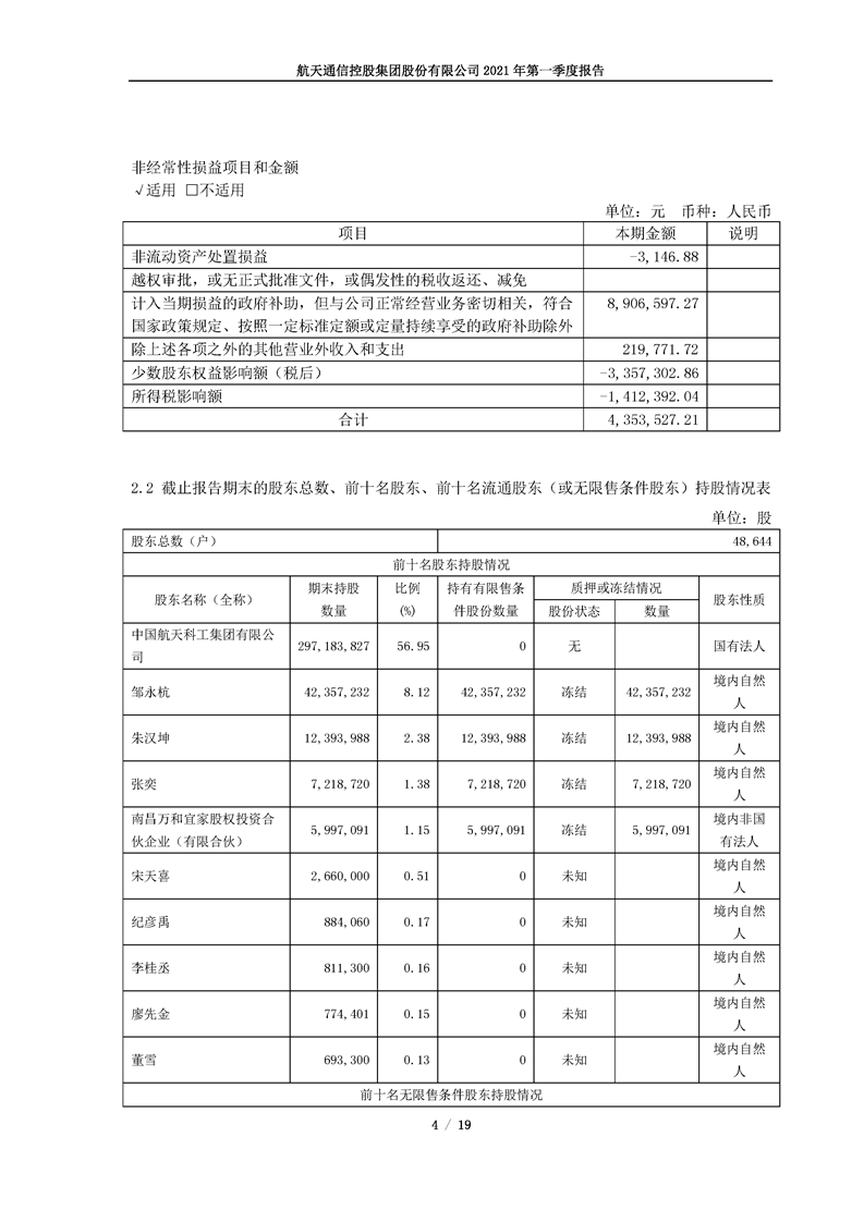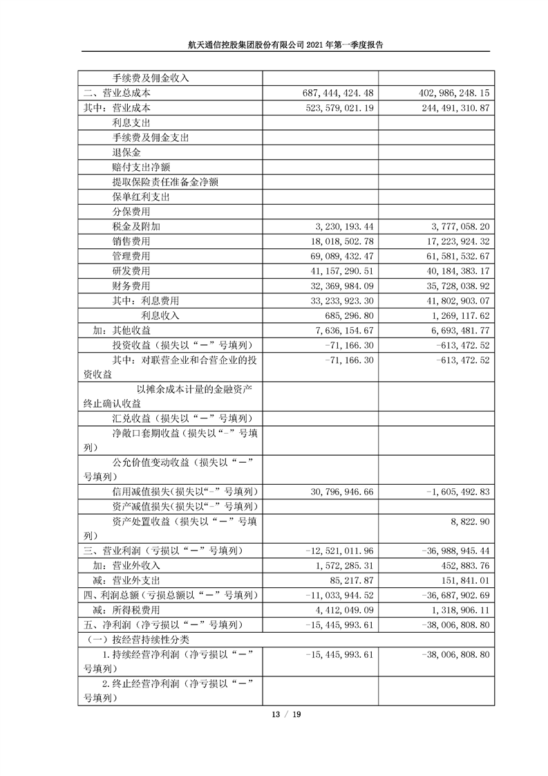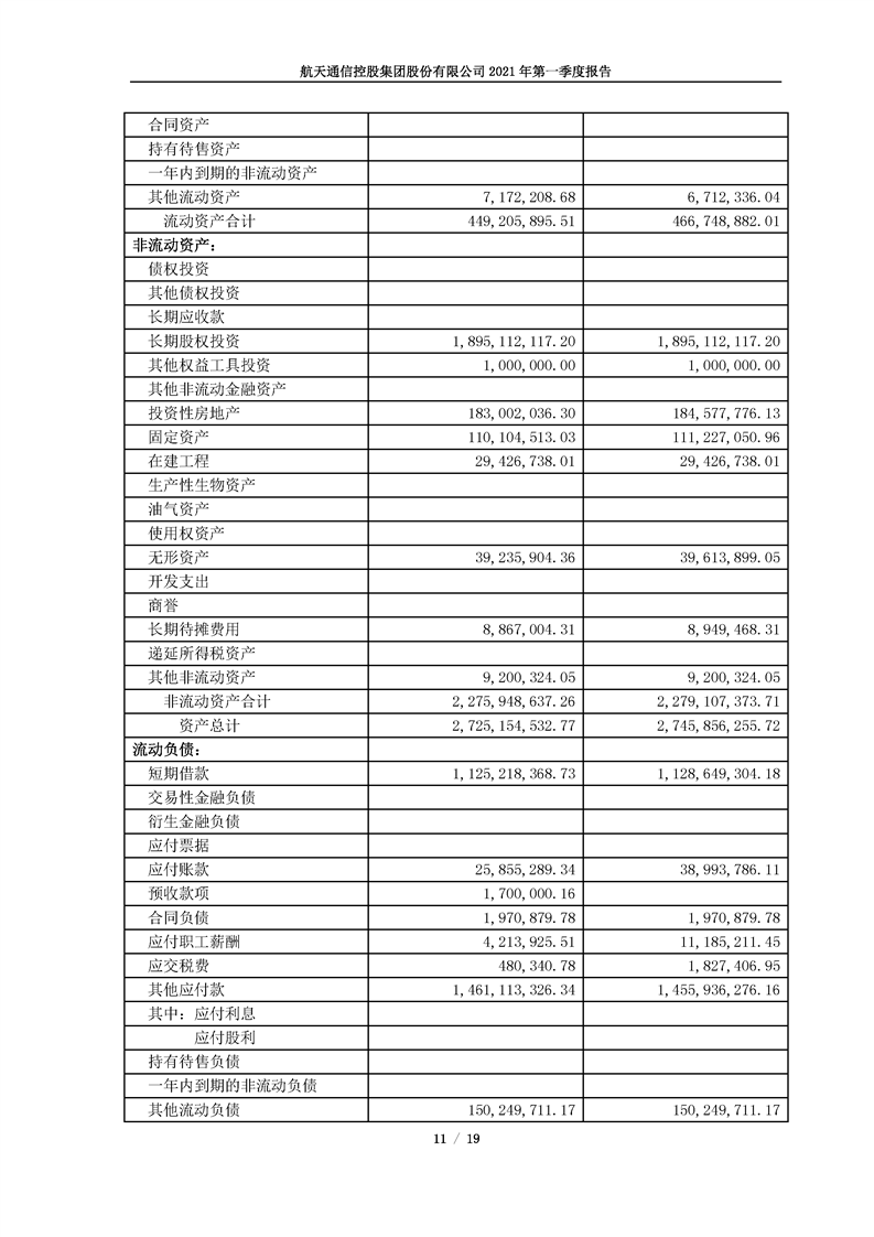 航天通信控股集團(tuán)股份有限公司2021年第一季度報(bào)告