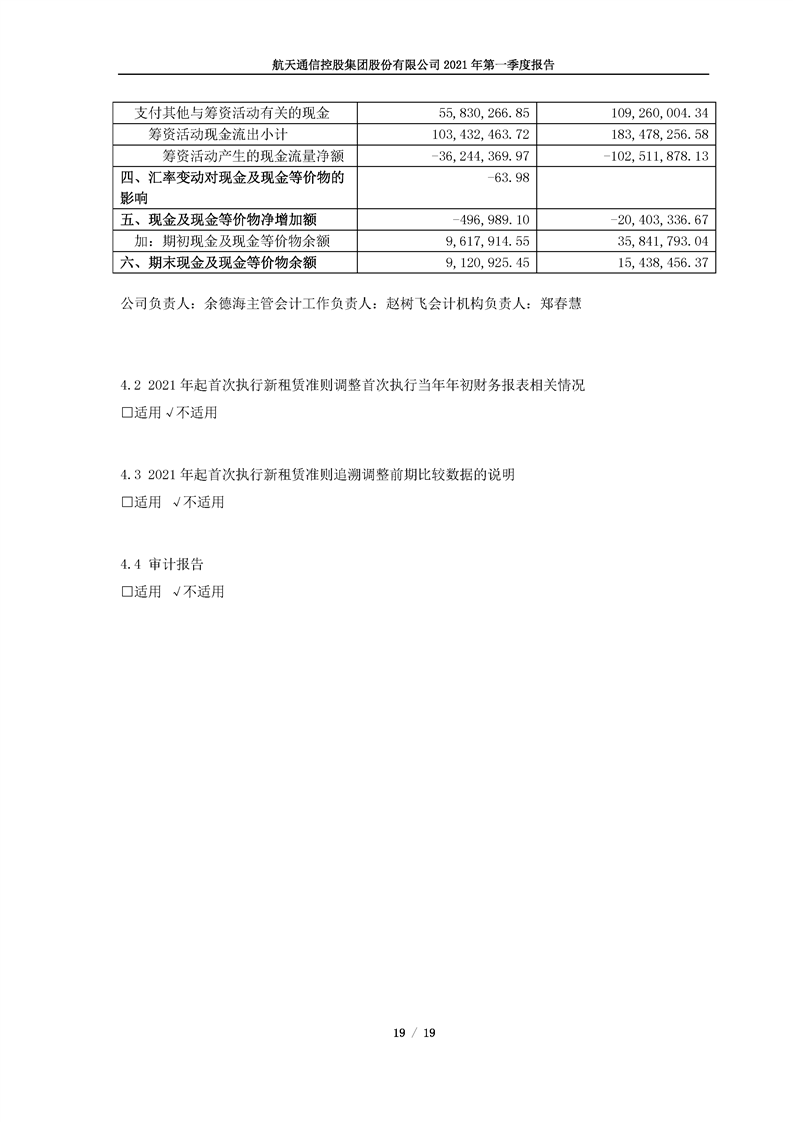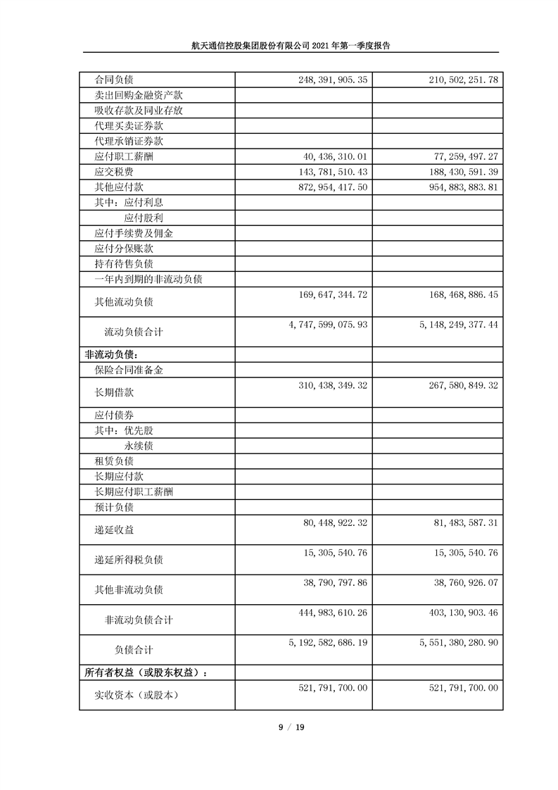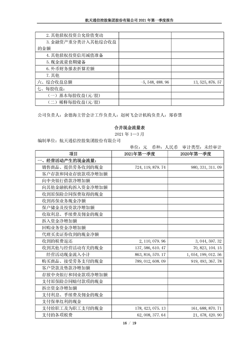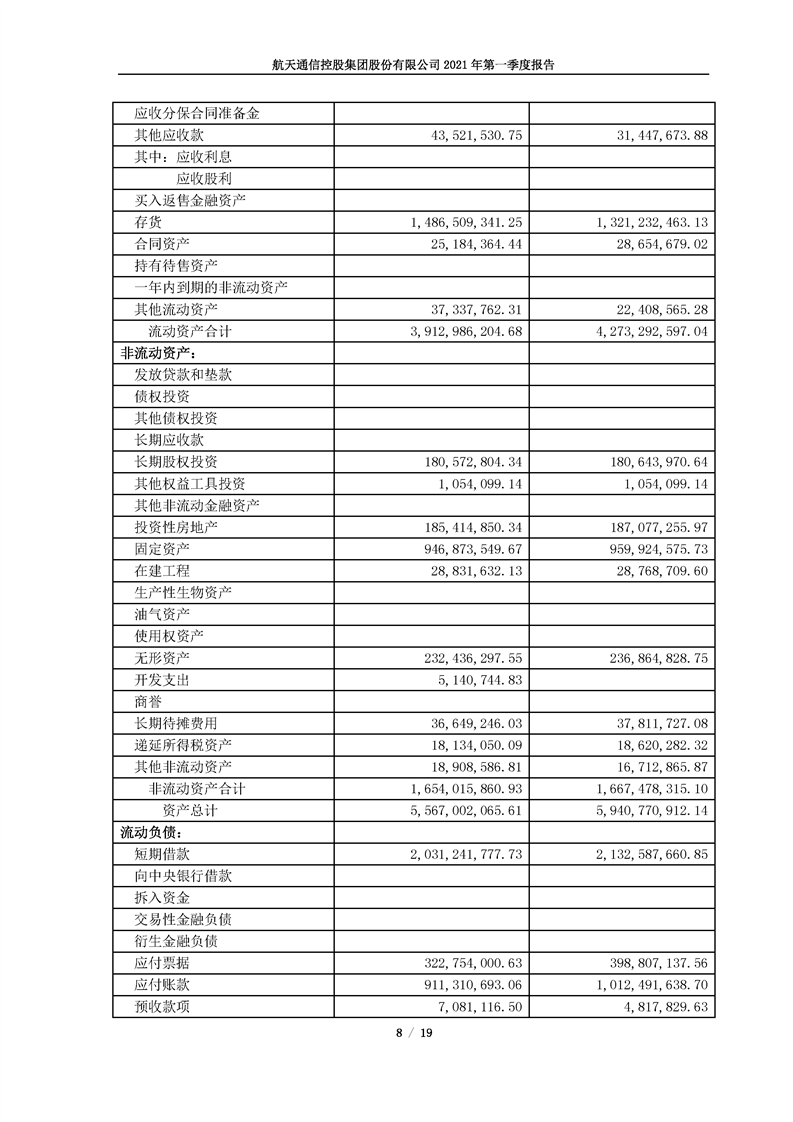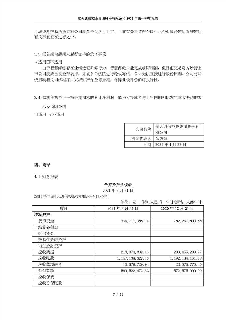 航天通信控股集團(tuán)股份有限公司2021年第一季度報(bào)告